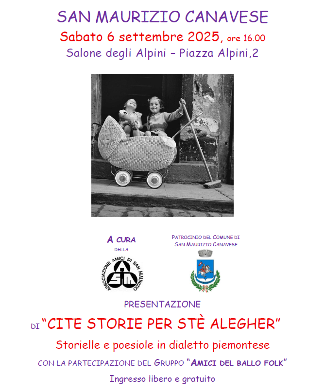 Eventi ed Attività: “CITE STORIE PER STÈ ALEGHER” Storielle e poesiole in dialetto piemontese – Sabato 6 settembre 2025 ore 16